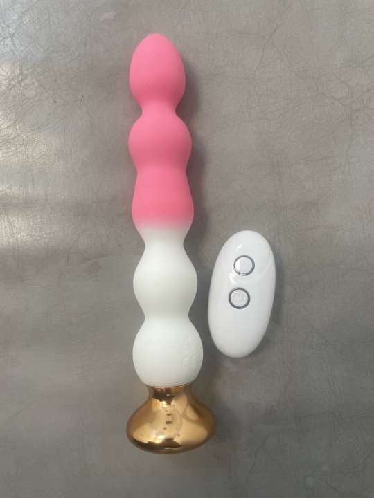 Анальная ёлочка от I-Moon изготовлена из медицинского силикона с элементами АВС-пластика. Стильное сочетание белого, розового и золотого цветов добавляет эстетики. Управление интуитивно: одна кнопка отвечает за включение, выбор из 10 режимов вибрации и выключение. В комплект входит пульт дистанционного управления, работающий от батарейки CR 2032.