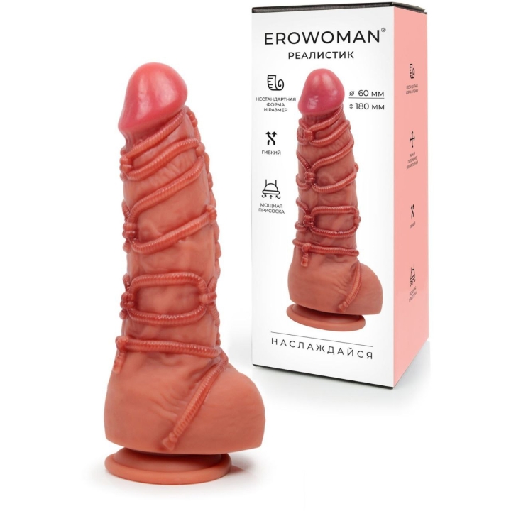 Ярко выраженная головка так и желает доставить вам те самые ощущения, о которых вы ранее могли только мечтать, а верёвка вокруг ствола, имитирующая технику “шибари” добавит эффекта наполненности и добавит новых ощущений. Приятный на ощупь материал выполнен из высококачественного TPR материала, что позволяет игрушке менять угол наклона, адаптируя её под различные позы. А мощная присоска гарантирует, что игрушка не упадёт в самый ответственный момент.