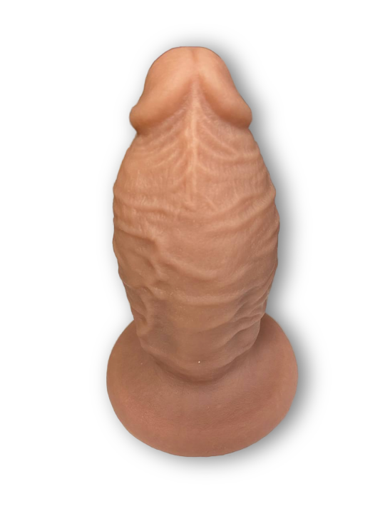 Нереалистичный фаллоимитатор из силикона с объемным стволом на присоске
