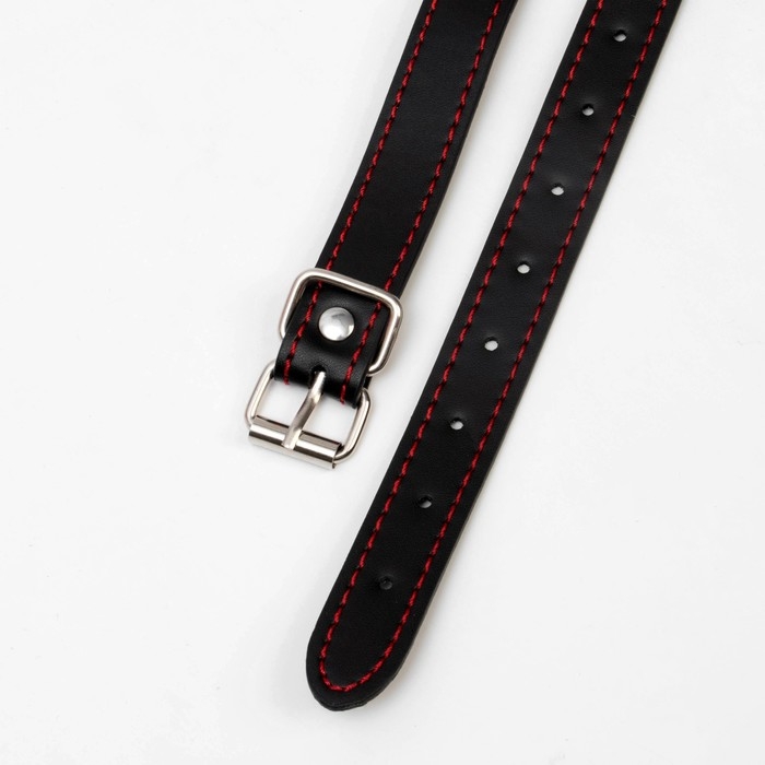 кожаный, черно-красный, глухой, средняя жесткость, размер 9х5 см