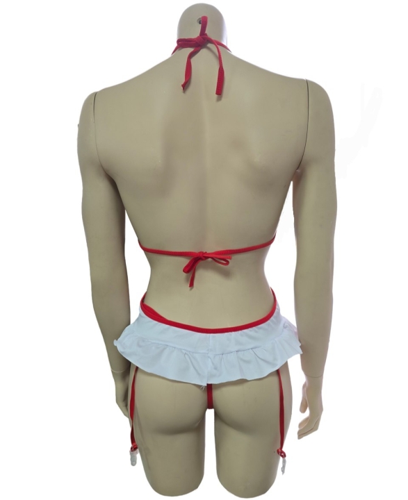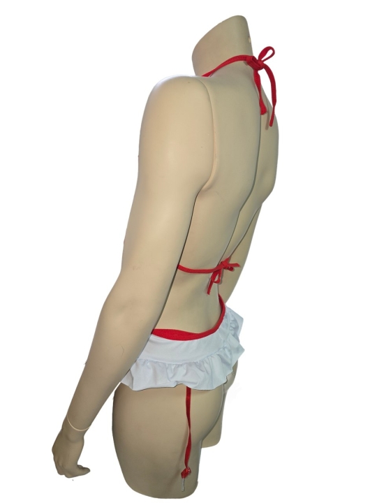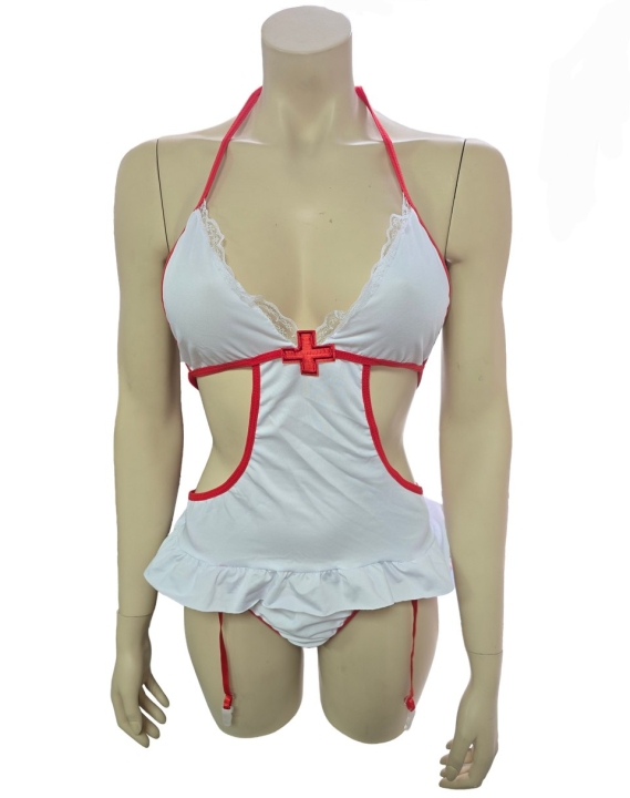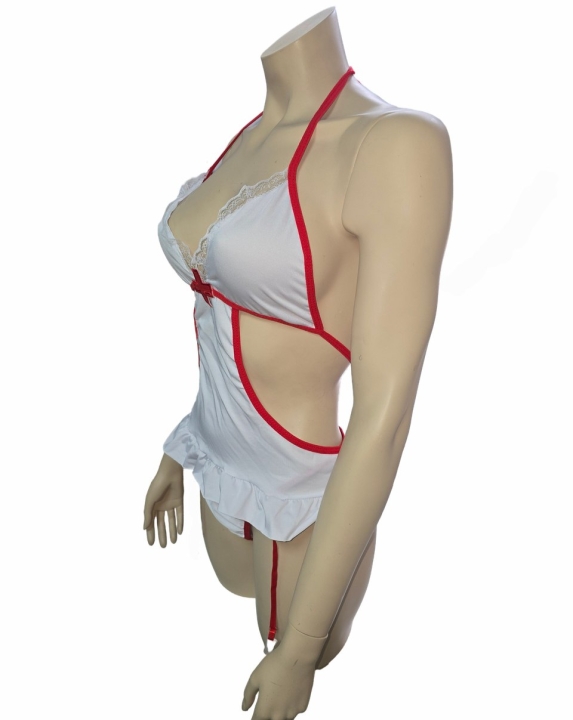 Костюм медсестры бело-красное боди, с защипами для чулок
