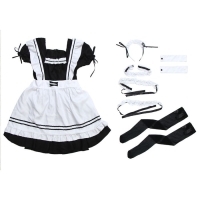 Костюм "Милая горничная" платье, фартук, подвязки на ноги, чулочки,манжеты, чокер и ободок