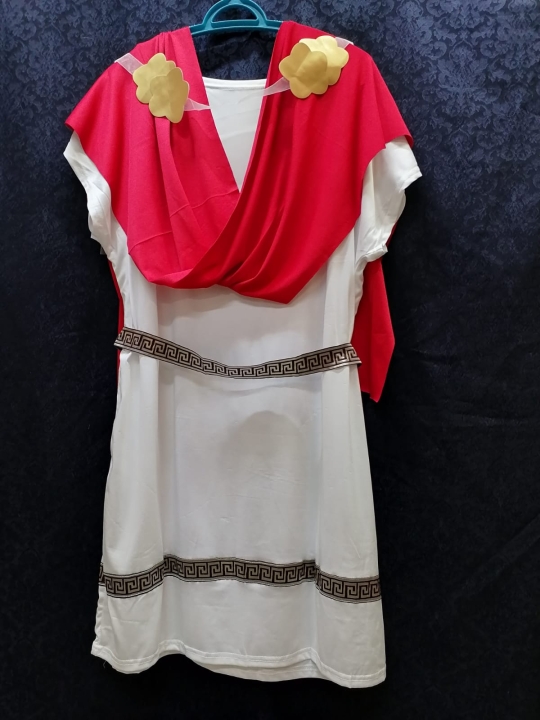 Костюм состоит из белой туники, красной накидки, пояса и золотого венца.