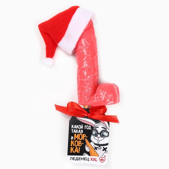 Большой леденец в виде фаллоса с шапкой Деда Мороза