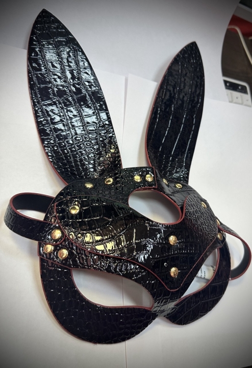 Лакированная черная маска зайки на ремне