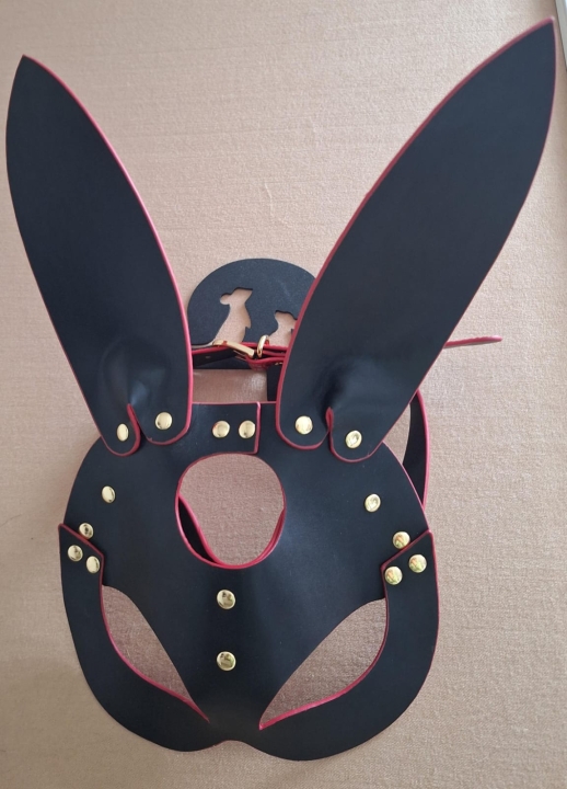 Маска сексуального зайчика из натуральной кожи черного цвета