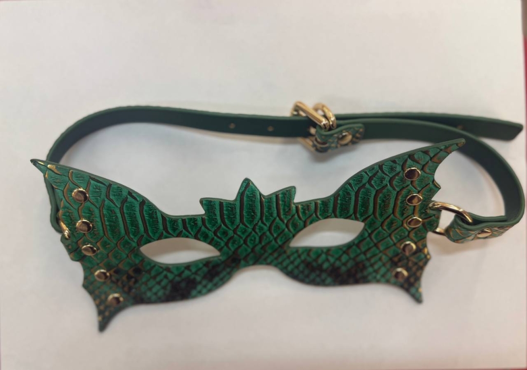 подробное описаниеЭта стильная открытая маска из натуральной кожи — ключ к мгновенному перевоплощению и усилению психологического напряжения в игре. Благородный изумрудный оттенок с рисунком под змеиную кожу и мерцание золотых металлических клепок создают образ, балансирующий на грани соблазна и власти.