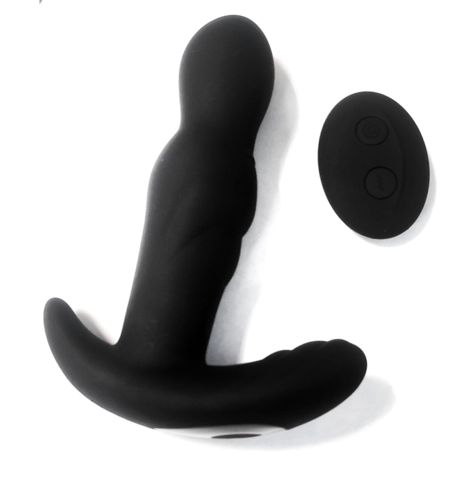 Лаконичный и мощный стимулятор простаты из черного медицинского силикона с двумя независимыми вибромоторами и пультом дистанционного управления.