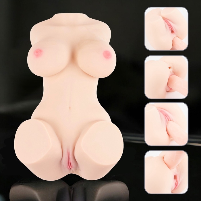 Полуторс размеров реальной девушки, объёмные грудь, ягодицы, реалистичные тоннели вагины и ануса.
