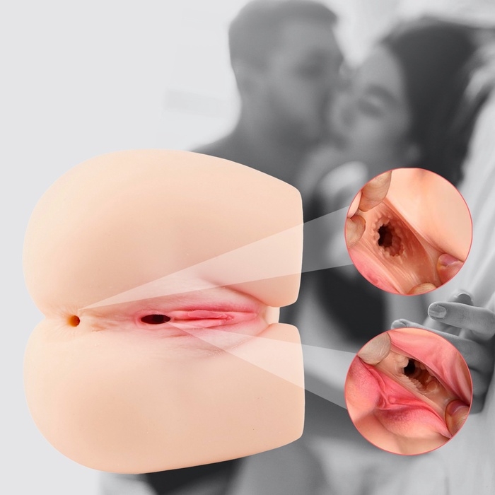Реалистичный мастурбатор телесного цвета с двумя отверстиями.