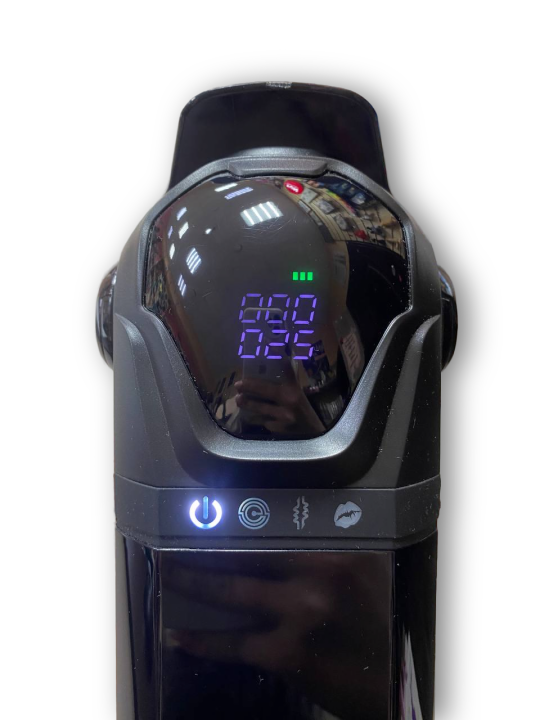 Мастурбатор оборудовано LED-дисплеем, который отображает уровень заряда, время использования и функции. Для разнообразия ощущений доступны 9 режимов вибрации, 9 режимов подвижных движений (вверх-вниз) и 9 режимов засасывания, имитирующих эффект минета. Если яркий свет дисплея мешает, вы можете надеть на мастурбатор его фуражку)