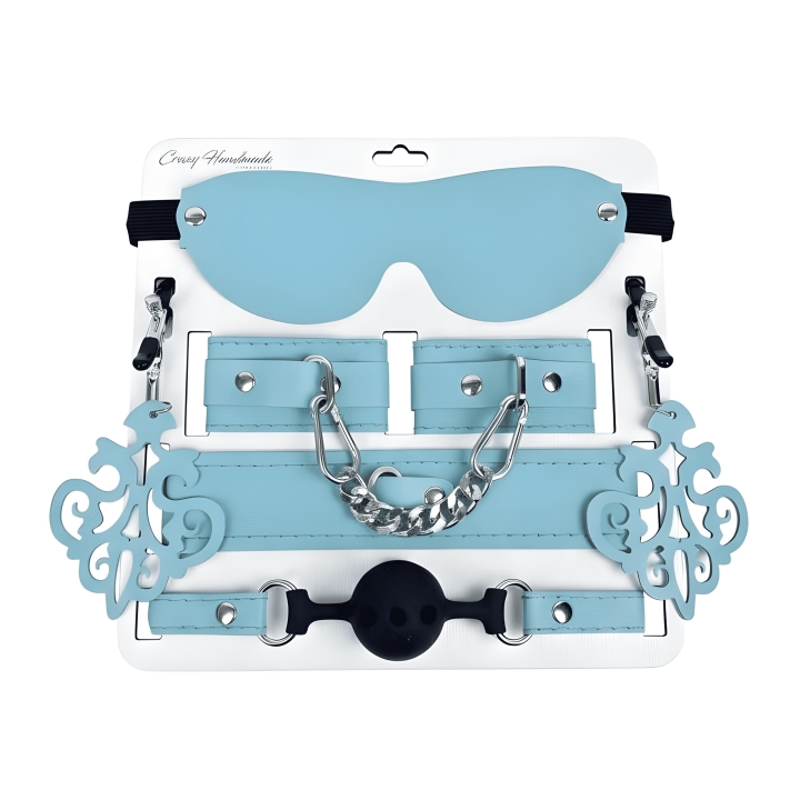 подробное описаниеНабор из кожи цвета тиффани (5 предметов) – стильный и функциональный BDSM-комплект от Crazy Handmade, который идеально подходит как для начинающих, так и для опытных пар, желающих добавить ярких ощущений в интимные игры.
