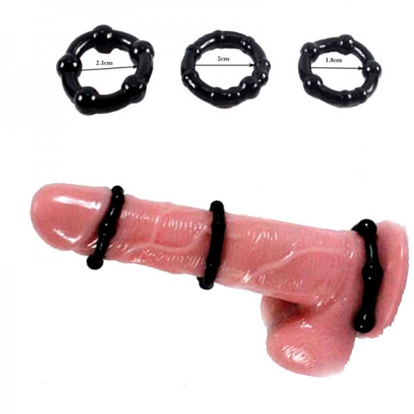 3 чёрных эрекционных кольца с пупырышками