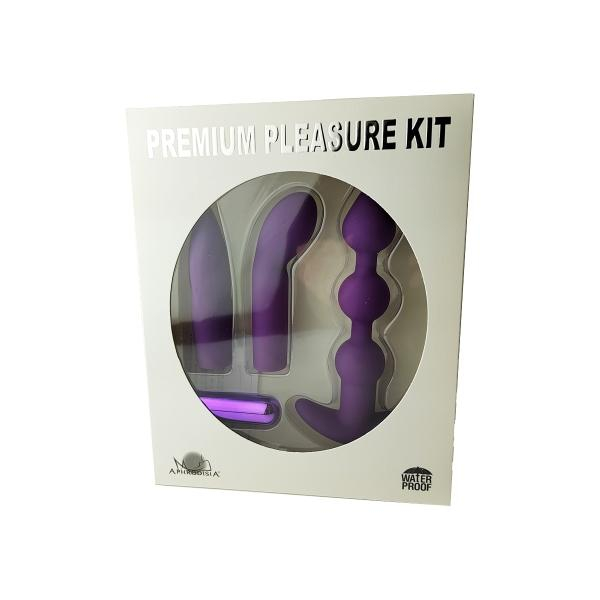 Уникальный набор Premium pleasure kit - это сразу четыре игрушки, и три различных вида стимуляции! Этот набор понравится как новичкам, которые не знают, что им выбрать, и смогут опробовать несколько вариантов сразу, так и более продвинутым пользователям секс-игрушек, которые желают разнообразить свою сексуальную жизнь и пополнить коллекцию! В набор Premium pleasure kit входит вибропуля и три сменные насадки. Вибропуля выполенна из высококачественного ABS пластика и обладает 10-ю мощными и разнообразными режимами вибрации, что позволит Вам вволю поэкспериментировать и выбрать тот режим, который подойдёт именно Вам! Вибропуля перезаряжаемая, зарядка магнитная, что делает эту игрушку полностью водопогружаемой. Вы можете использовать её где угодно - в ванне, в бассейне, в море, в сауне или в бане - уверяем, с ней ничего не случится! Также в набор Premium pleasure kit входят три сменные насадки из медицинского гиппоалергенного силикона, которые надеваются на вибропулю, что даёт Вам сразу три вибратора: анальную ёлочку с тремя звеньями одного размера и ограничителем для ношения, вагинальный изогнутый вибратор для стимуляции G-зоны, и клиторальный вибратор в форме двух трепетно ласкающих Вас лепестков! Эту насадку можно использовать для стимуляции любых эрогенных зон: клитора и сосков у девушки, пениса и мошонки - у мужчины. Подарите себе и своей второй половине незабываемое наслаждение!