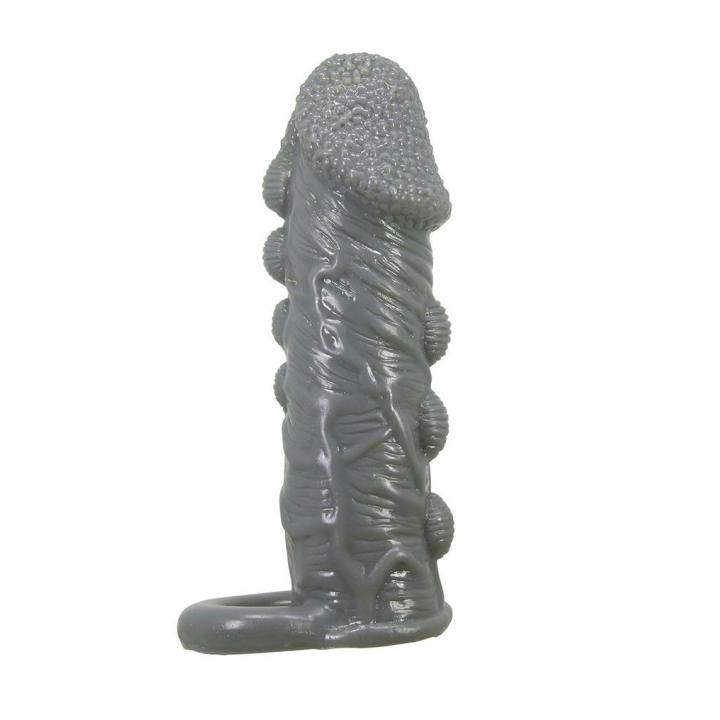 Насадка для увеличения члена из кибер кожи темного цвета.