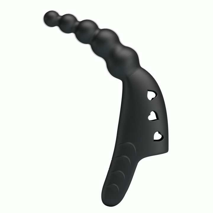 рельефная насадка для двойного проникновения с подхватом для мошонки, гибкая, черная