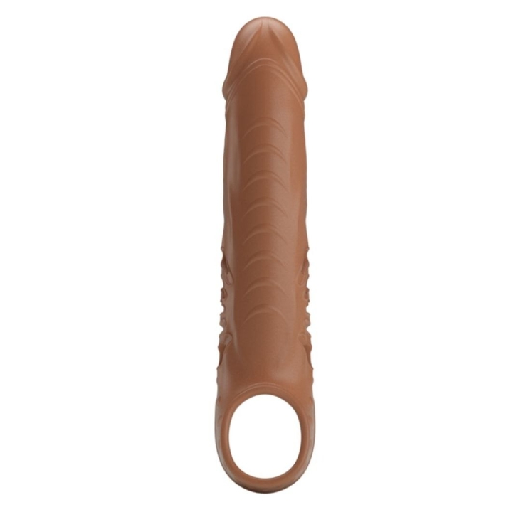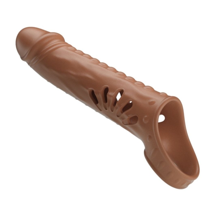 Насадка для увеличения члена из кибер кожи темного цвета.