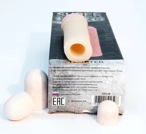 Насадкаe на член телесного цвета из материала нового поколения, удлиняющая на три разных размера.