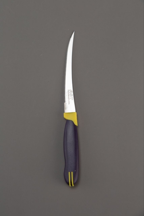 Нож представлен в ассортименте с синей ручкой, что делает его легко узнаваемым и удобным для хранения. Вы можете выбрать клинок в зависимости от ваших предпочтений: классический, рифленый или со скосом под тупым углом для специфических задач.