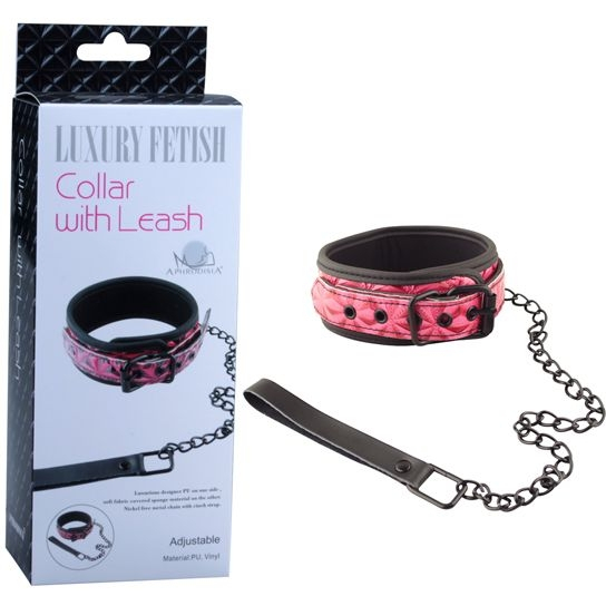 Ошейник с поводком от бренда Luxury Fetish Collar with Leash – это стильный атрибут для БДСМ практик и эротических ролевых игр. Изготовлен из ярко розового винила с тиснением. Мягкая подкладка нежно прилегает к телу и не раздражает даже самую чувствительную кожу. Длинный ремешок с чёрными металлическими люверсами подходит для любого размера, а небольшое D-образное кольцо которое расположено на внешней стороне аксессуара позволяет закрепить входящий в комплект поводок из чернёной цепи с карабином и кожаной петлёй для фиксации на запястье. А чтобы добавить убедительности и правдоподобности вашим эротическим играм и максимально сконцентрироваться на ощущениях используйте кляп от бренда Luxury Fetish Ball Gag. Длина цепочки - 98,5 см.