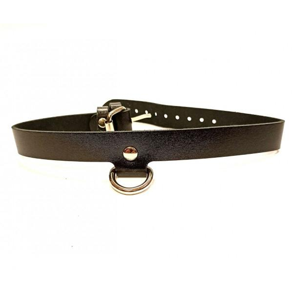 Чокер на шею из натуральной кожи с металлическим кольцом серебристого цвета в середине.