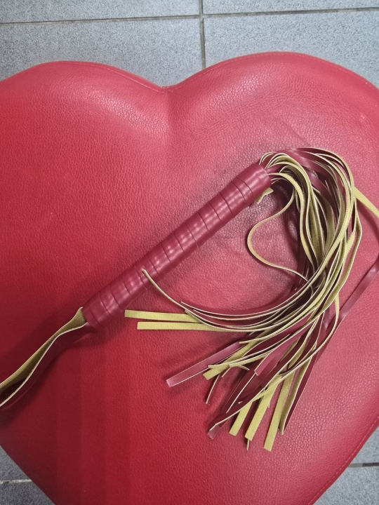 Восхитительная золотая кожаная плеть с коричнево-красной рукоятью