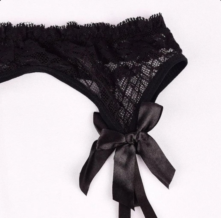 Кружевной пояс в комплекте с прозрачными трусиками - стрингами.