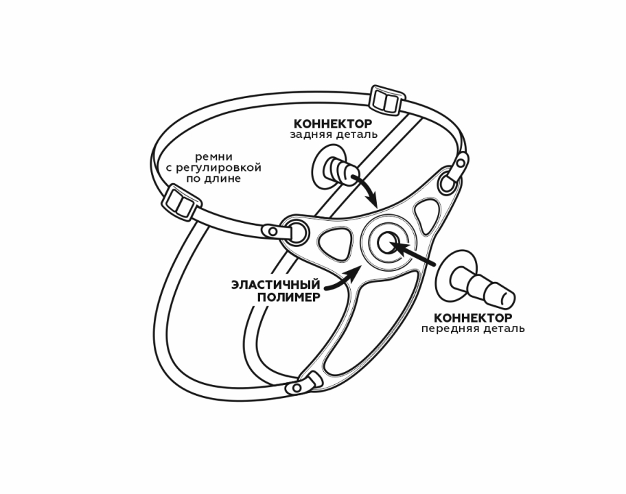 Пояс из эластичного полимера с двумя коннекторами и насадкой