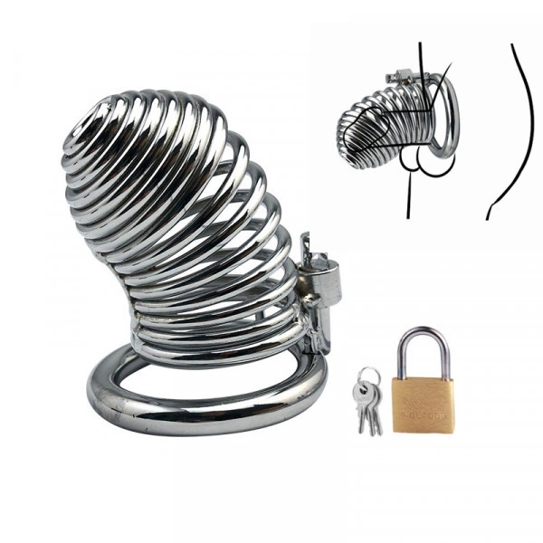Мужская сбруя верности в виде пружины и предназначена для механического предотвращения полового акта, мастурбации и даже эрекции без ведома и разрешения хозяйки ключей.