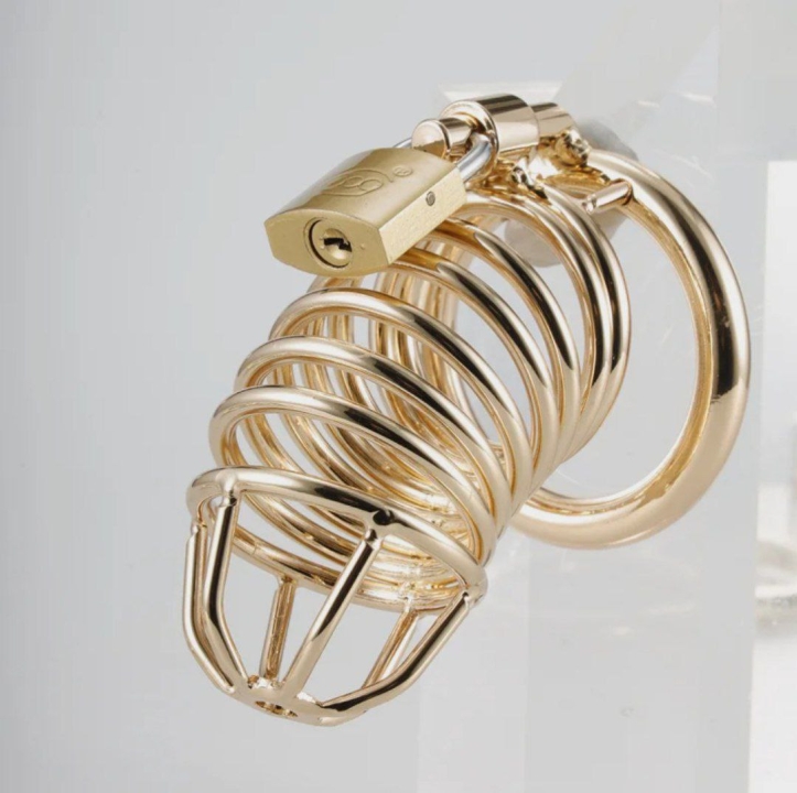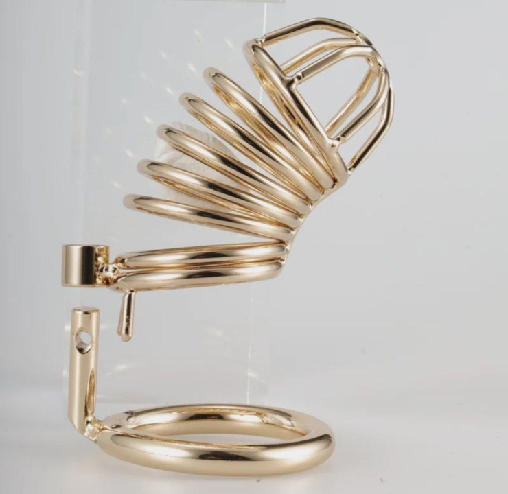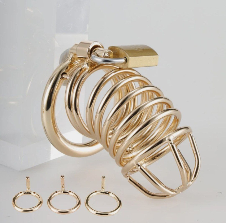 Металлический пояс в золотом цвете, съёмное кольцо под мошонку
