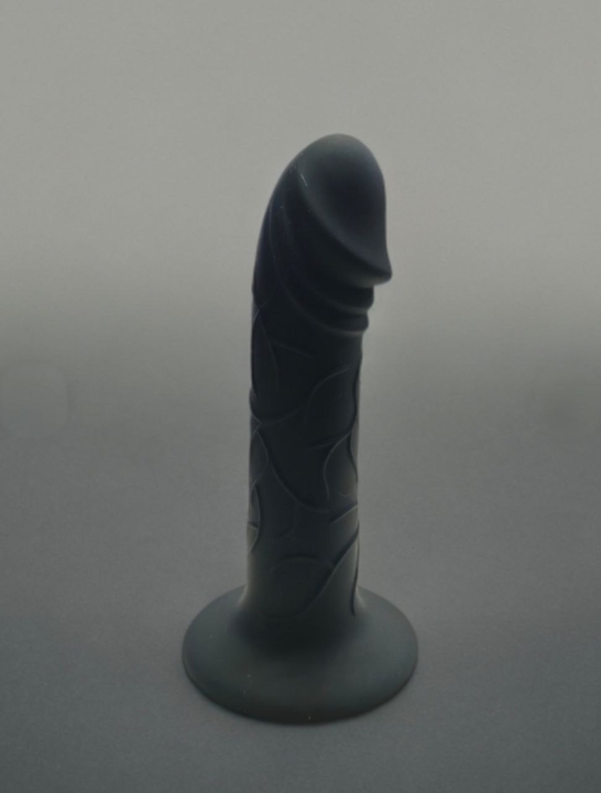 Вибратор имеет реалистичную фаллическую форму с очерченной головкой и венами на стволе.