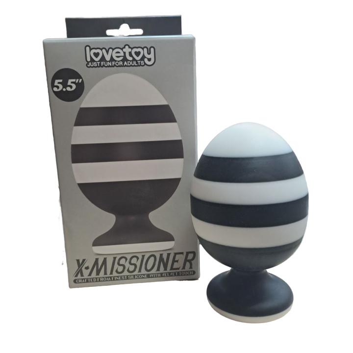 Крупная анальная Пробка 7,5 см черно-белая в полоску "Lovetoy"