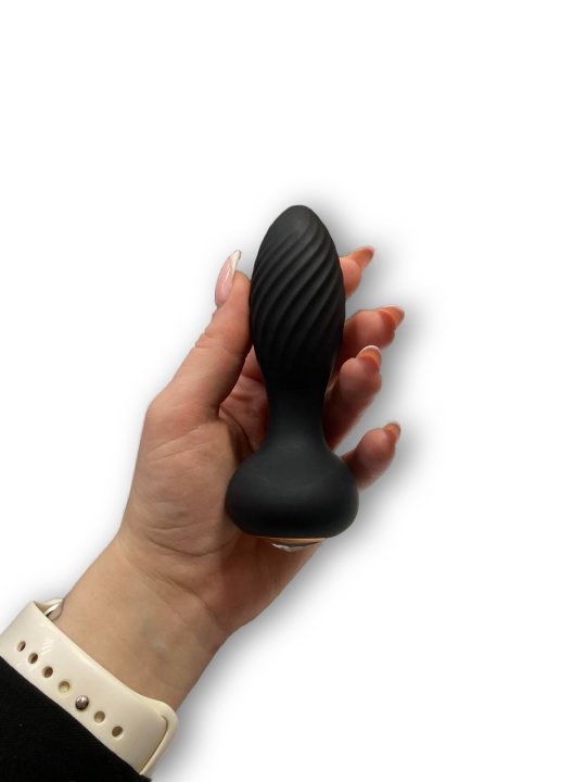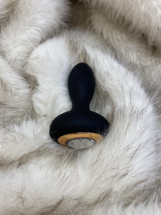 Черная анальная пробка с вибрацией и ребрышками для дополнительной стимуляции с белым кристаллом
