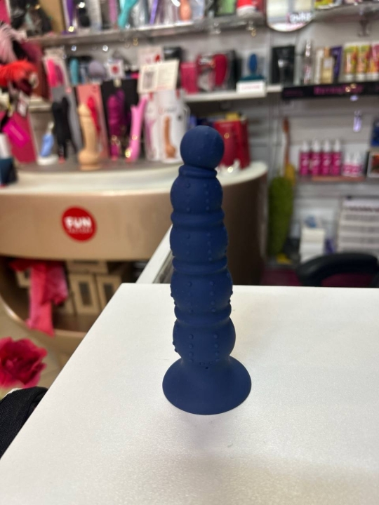 Небольшая анальная пробка из синего металла.
