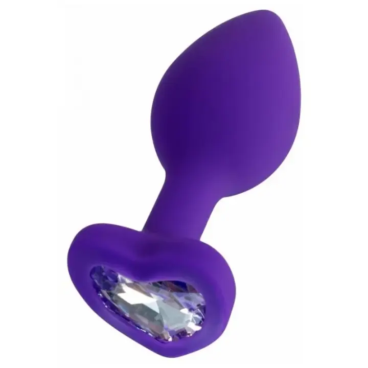 Силиконовый анальный плаг с ограничителем в виде фиолетового сердечка, размер L