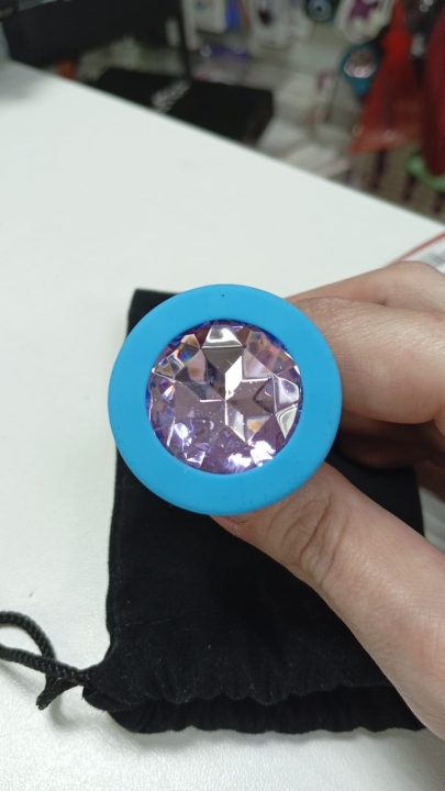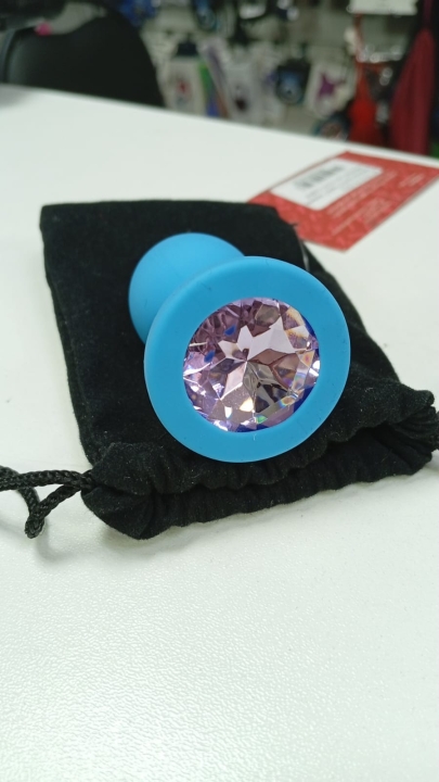 Пробка из медицинского силикона голубого цвета с нежно-сиреневым кристаллом, размер S