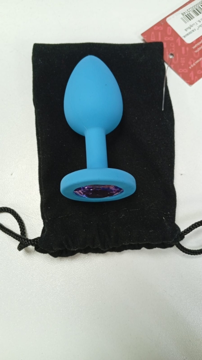 Голубая силиконовая пробочка голубого цвета с черным кристалом.S