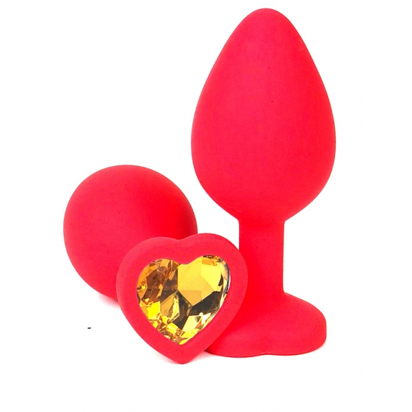 Пробка "Ювелир" силиконовая красная с оранжевым кристаллом-сердечком