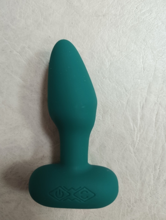 В основании силиконовой пробки есть ограничитель глубины проникновения. На золотой вставочке, гармонично сочетающейся с бархатным зеленым силиконом рабочей части расположены встроенные кнопочки управления.