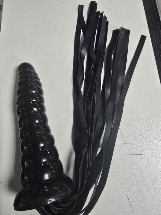 Плеть о 20-ти хвостах из сверкающих страз с брутальной чёрной кожаной рукоятью.