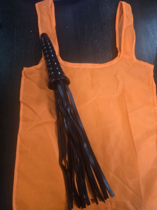 Плеть с металлическрй ручкой, красные хвосты и металлическими шариками на концах.