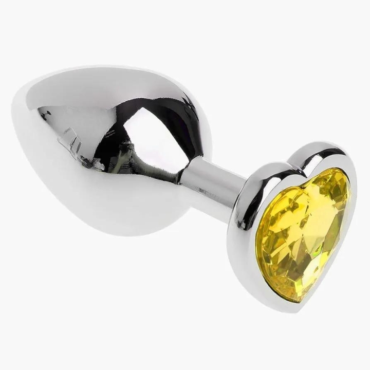 серебристая анальная пробка с желтым кристаллом в форме сердца