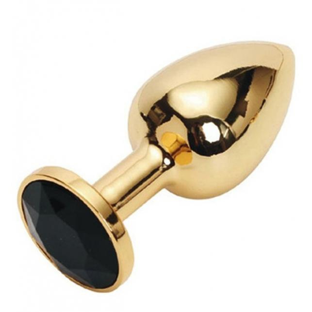 Красивая анальная пробка из металла золотого цвета с кристаллом в виде большого брильянта.