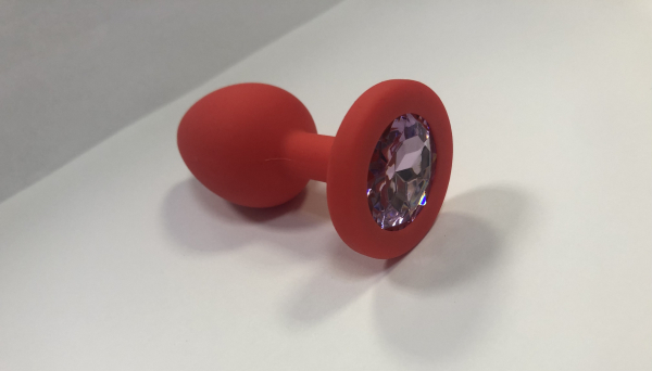 Силиконовая розовая пробка с черным кристаллом, размер М