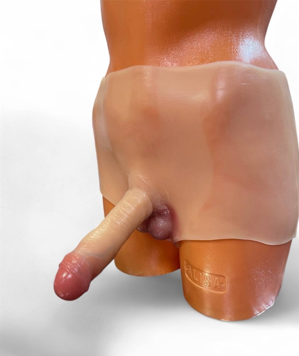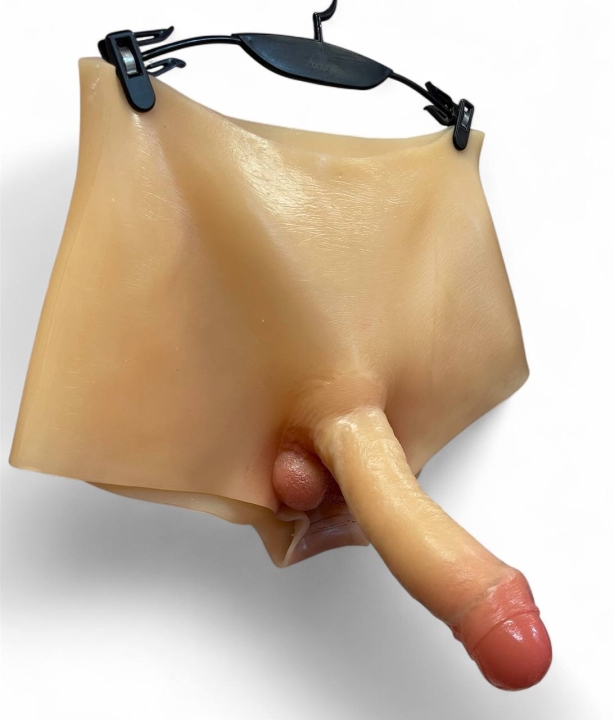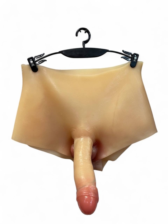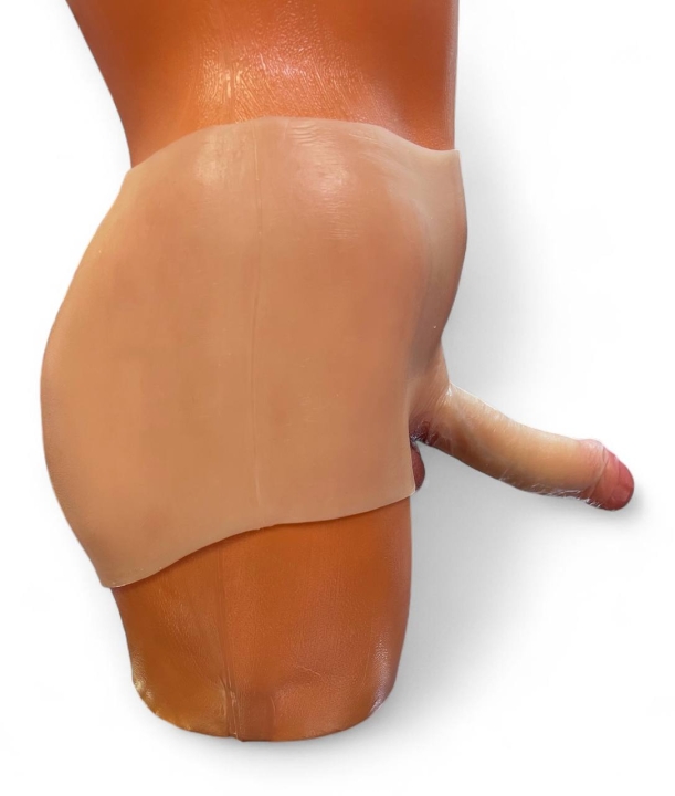 Трусики уникального, минатюрного размера 38-44, с кольцевым креплением, и насадка из прозрачного геля с формирующим хребтом.
