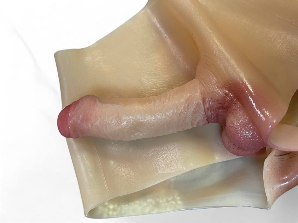 литые трусики и фаллос с мошонкой, имитация настоящей кожи, размер 42-48, 16х4 см