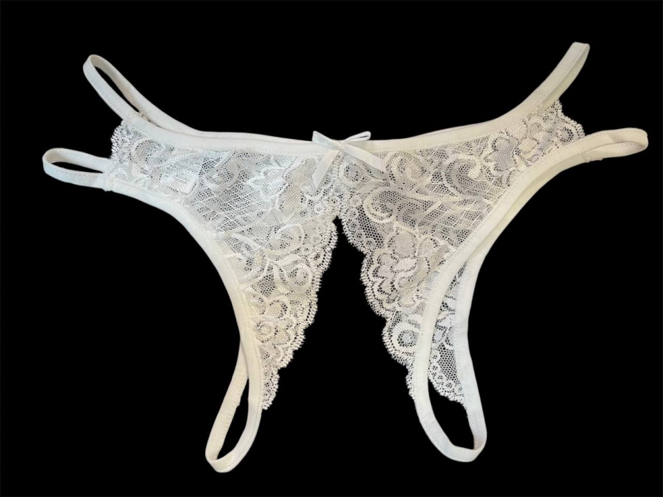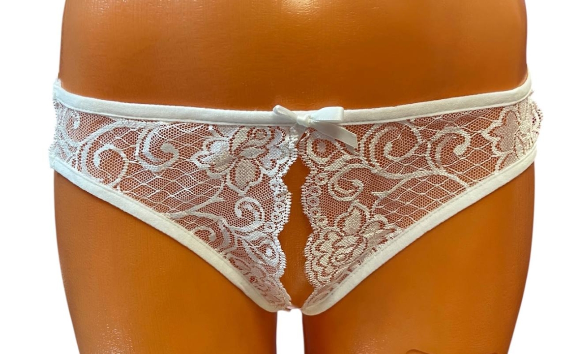 Белоснежные кружевные трусики с открытой киской и попочкой, р. 50 - 52