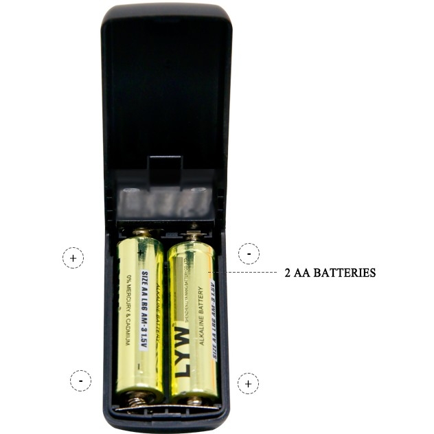 Управление осуществляется с помощью выносного пульта, работающего от двух батареек типа АА (не входят в комплект).