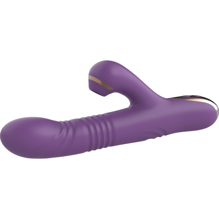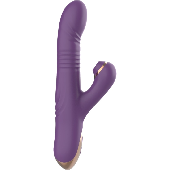 Нереалистичный вибратор с поступательными движениями и стимуляцией клитора и промежности.