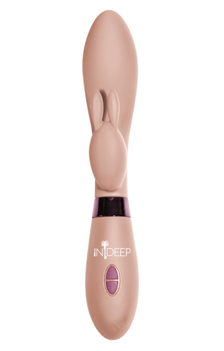 Специальный отросток в виде зайчика удобно расположится на Вашем клиторе и осыпает его нежнейшими ласками от легких вибраций до мощнейших импульсов. В вибраторе "In Deep" Yonce 10 режимов вибрации. Две кнопки управления, смена режима и вкл./выкл., находятся на основании внизу вибратора.